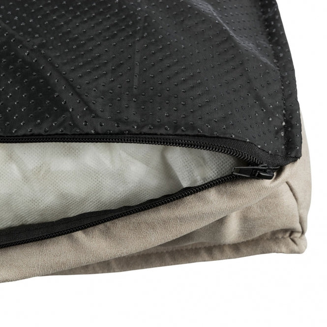 Der Bezug ist abnehmbar und bei 40°C waschbar, was die Reinigung zum Kinderspiel macht. Das Inlett kann einfach per Hand gewaschen werden. Dank des rutschfesten Bodens bleibt das Kissen an Ort und Stelle, selbst wenn dein Hund darauf herumtollt. In den Farben Sand/Grau gehalten, fügt sich das Calito Vital Kissen stilvoll in deine Wohnlandschaft ein und sorgt gleichzeitig für das Wohlbefinden deines Hundes.